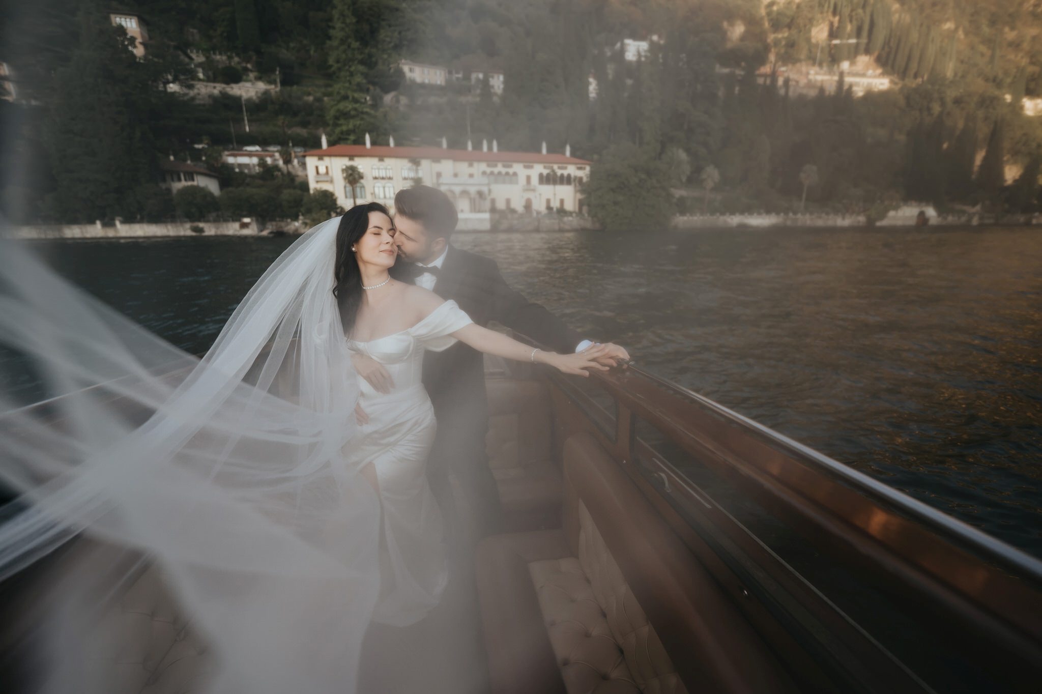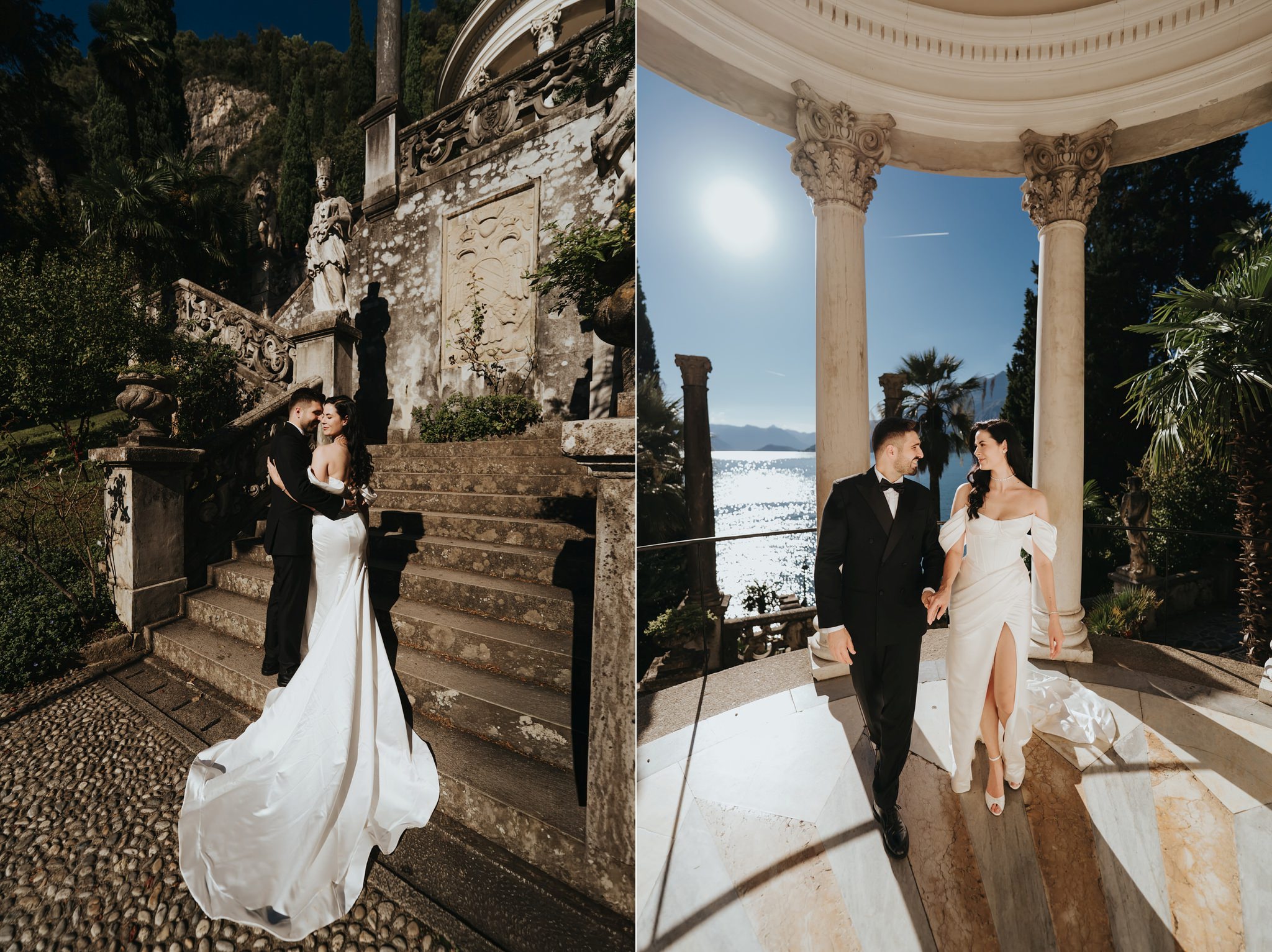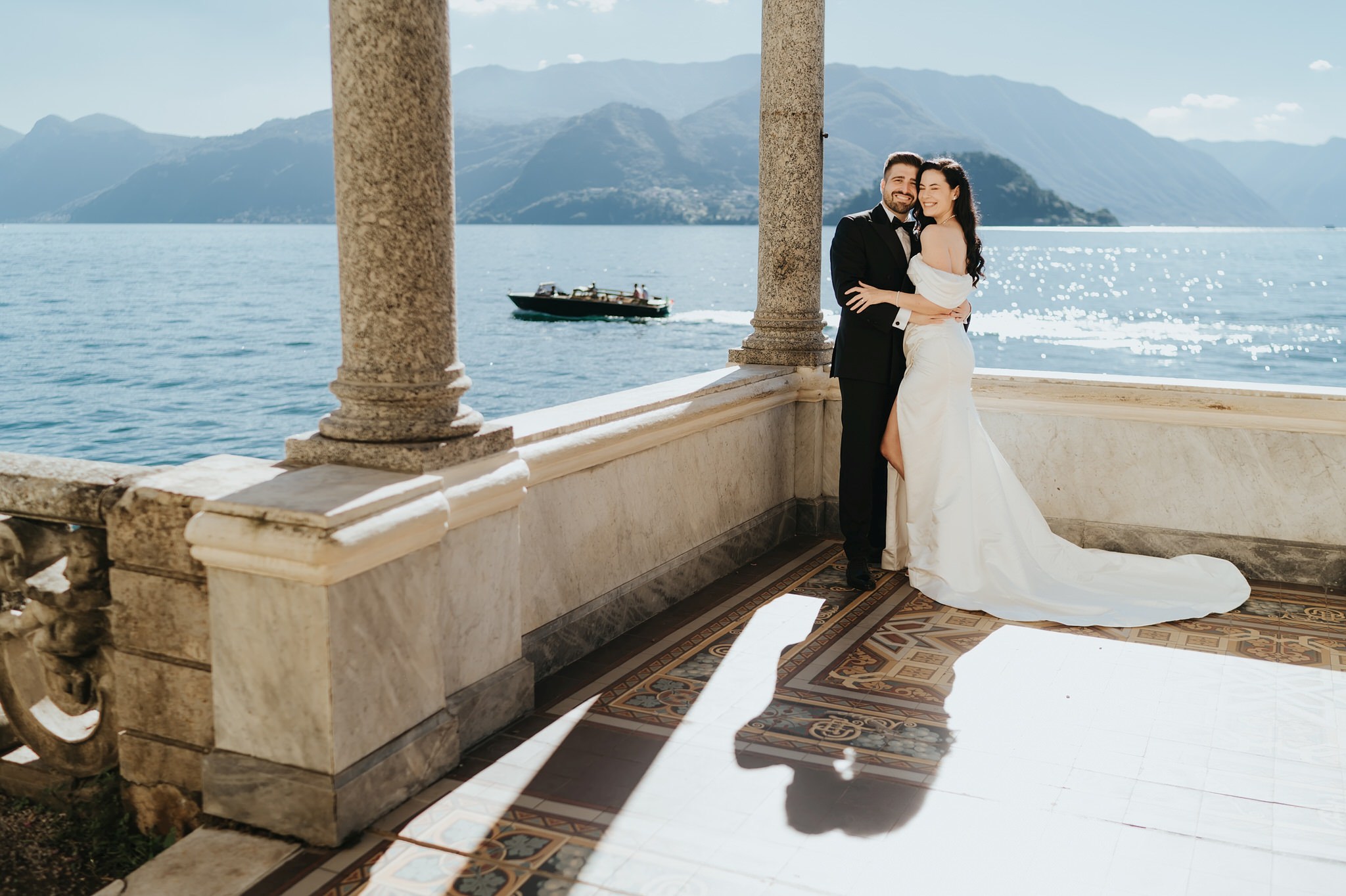 Vali a cerut-o în căsătorie la Villa Monastero, pe balcon, iar apoi și-au făcut fotografii pe barcă. Deci, la ședința foto After Wedding am urmat același traseu, dar de data aceasta în ținutele de mire și mireasă.