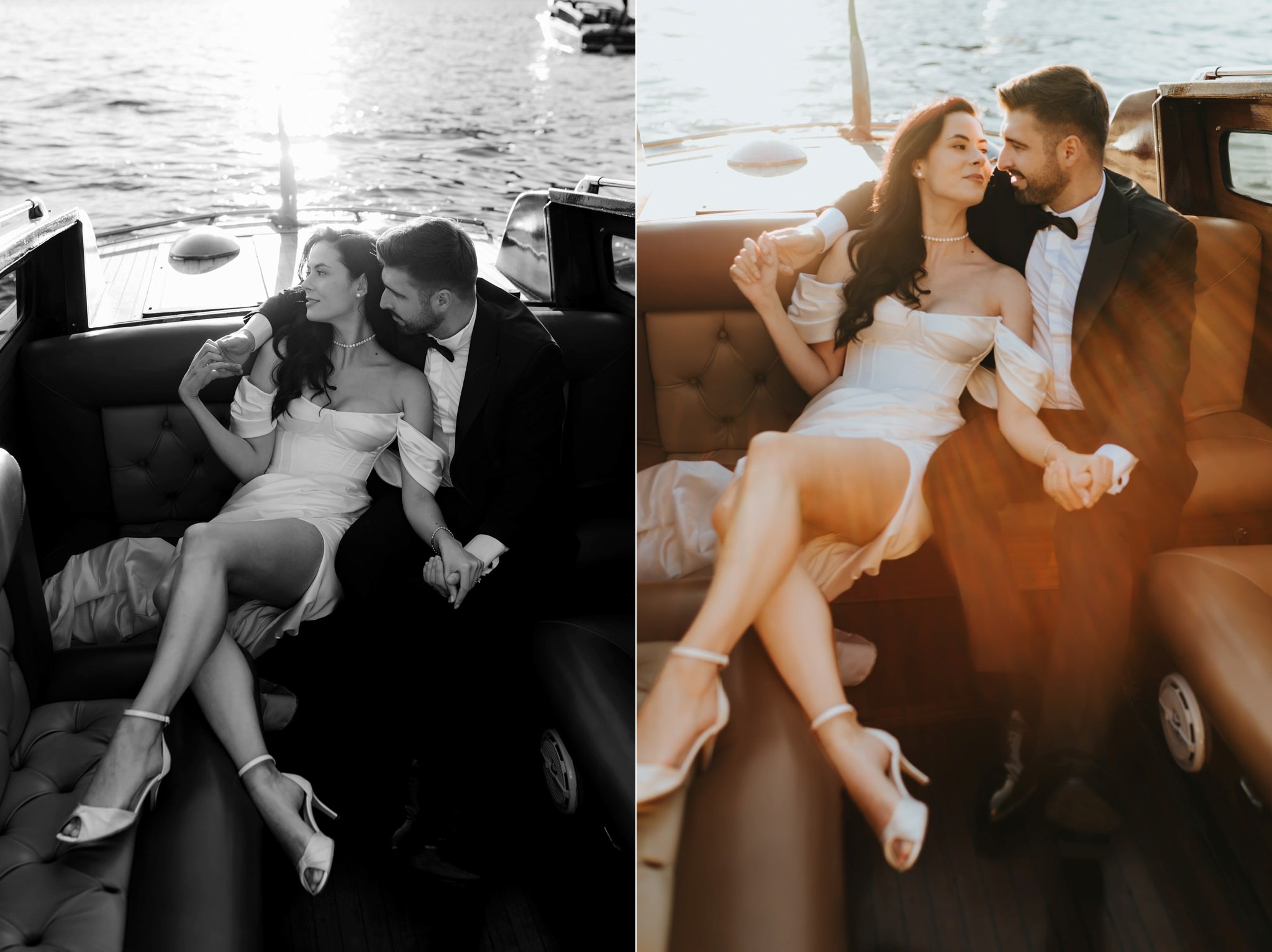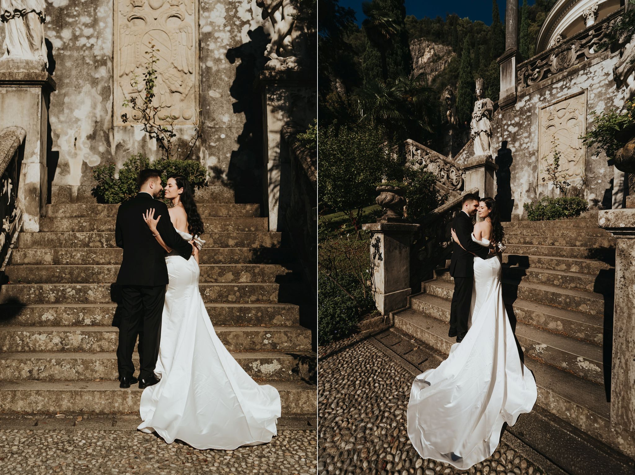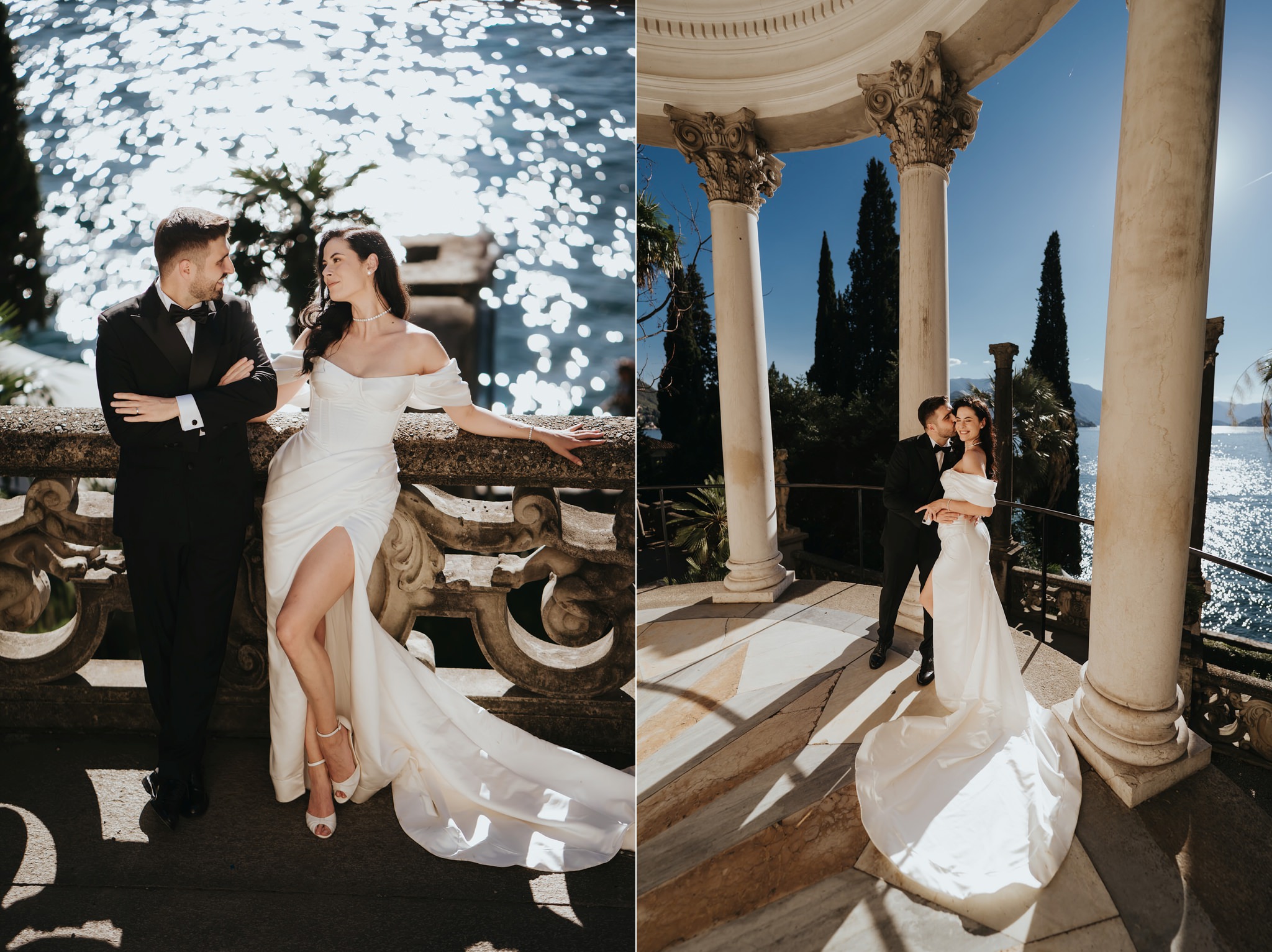 Vali a cerut-o în căsătorie la Villa Monastero, pe balcon, iar apoi și-au făcut fotografii pe barcă. Deci, la ședința foto After Wedding am urmat același traseu, dar de data aceasta în ținutele de mire și mireasă.